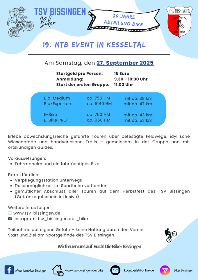 TSV Bissingen: Abteilung Bike feiert 20 Jahre – Ein besonderes Jubiläumstrikot und spannende Aktionen warten